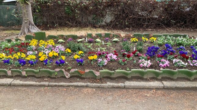 今日は、曇りで寒さも一時ほどではなくなりました。最近3~4ヶ月ぶりの雨が降って花壇も湿っていました。布施新町は、J:COMの放送で高齢化対策をとっていた町として高く評価されました。