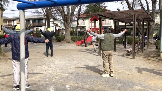 先週は体操プログラムを流すラジカセの接続が順調でなく、一部で音楽なしで行いました。今日はその対策として体操プログラムをスマートフォンに録音して拡張スピーカーで流すテストを行いました。